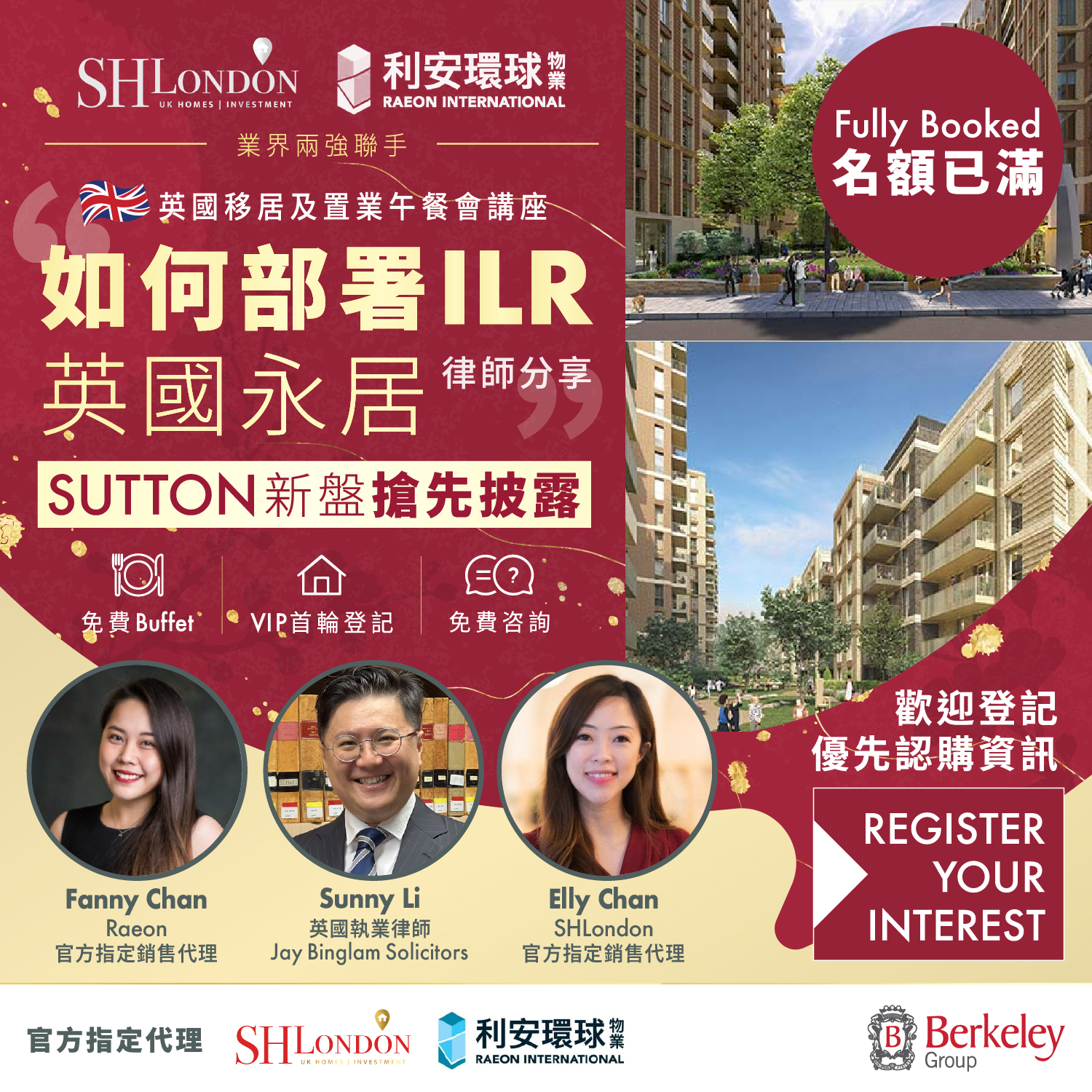 【官方指定代理 】SHLondon x Raeon 午餐會講座|未開售Sutton新盤搶先披露 (活動名額已滿,你仍可登記以獲優先項目資訊)